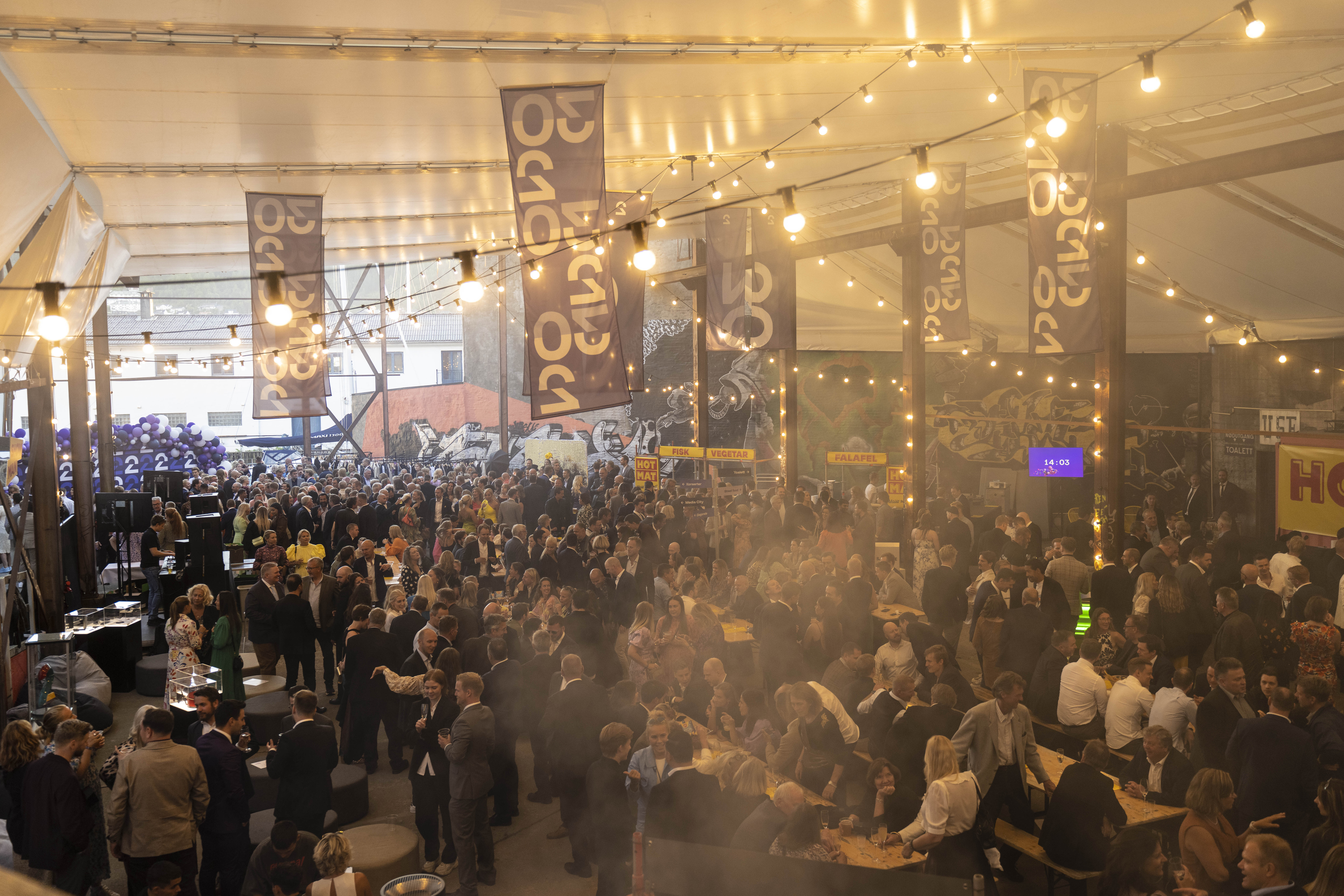 Mer enn ti artister spilte på storscenen i Hallen USF da TV2 feiret sitt 30-årsjubileum. 950 gjester storkoste seg i særpregede omgivelser, med topp mat fra HOT Mat og superb produksjon fra Kulturoperatørene. Det var en perfekt testkjøring for aktivitet i den store hallen.