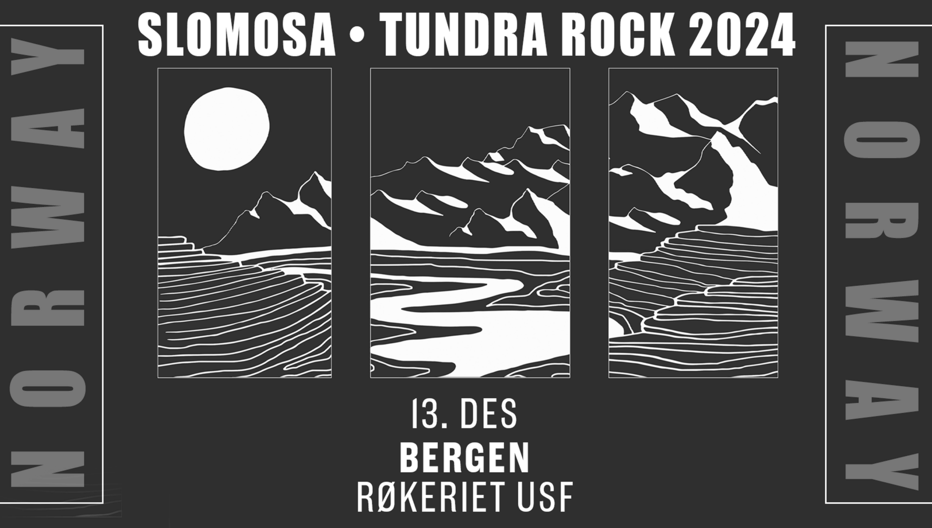 2024 er et vanvittig år for Slomosa; nytt album, Tundra Rock, på Stickman Records slippes 13.september, USA-turné med Alkaline Trio & Spanish Love Songs i september, Europa-turné med GreenLeaf i oktober, flere titalls festivaler gjennom hele året og headlineturné i Europa som avsluttes på hjemmebane i Bergen med bandets hittil største klubbkonsert på Røkeriet USF.